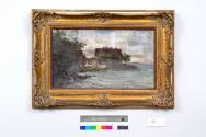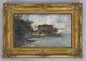 000071 E. Ilz(;), Ψαράδικο Σπίτι στη Λίμνη, 1890, ελαιογραφία σε ξύλο, 42 × 60 εκ.