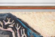 The composition develops vertically, depicting a rocky cliff, upon which strange trees—likely lentisks—appear to grow. Using pastel as a medium and adopting an expressionist style with anti-realistic colours, the artist depicts the barren landscape. The cliff is rendered with hard, black outlines while the geometric planes are filled with contrasting colours (warm and cold tones). Amid these planes, the curved forms of the trees—painted in beige, white, mauve, and pink—stand out: another contrasting game. The painting is part of a series with landscapes that Yialouris created around 1970, revealing that—although he lived primarily on Chios—he was fully engaged with the wider artistic currents of his time. This was an era when Modernism, and particularly abstract painting, remained the dominant movement in Greek art.