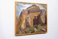 Around 1960, Yannis Mitarakis visited Meteora. Over the following years, until his death in 1963, he created several paintings inspired by the wild terrain of this distinctive region of Thessaly. In the painting, the artist adopts a frog’s eye view, a technique that allows him to convey the imposing presence of the rock. Perched atop it, almost vanishing into the clouds, is the Monastery of Saint Stephen. Nonetheless, Mitarakis was not concerned with the picturesque quality of post-Byzantine architecture, nor with the geological uniqueness of the landscape, nor with the monks’ desire to withdraw from the worldly. An atheist and a skeptic, the painter was above all interested in the visual allure of the landscape—the monumentality of the natural rock, the roughness of its form. These were the elements he sought to convey in his painting, adopting an abstract style for volumes and forms, favoring a new artistic expression with cubist references, emphasizing large surfaces and schematic representation.