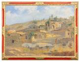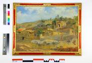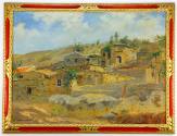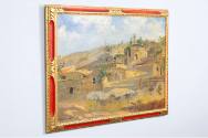 Nenitouria is a small village on the northwestern edge of the island of Chios. For his painting, Aristefs adopted a synthetic approach, similar to other works of the same series, such as Kampia and Lithi: he gave emphasis to the general view of the settlement and the landscape, painting the houses as they spread across the low hill. The composition is divided into three successive zones: in the foreground, the dry grass and rocks serve as an introduction. The houses occupy the middle and most important part of the composition, while a thin strip of sky crowns the scene. The painting stands out thanks to the swift and bold execution, though not at the expense of the design or the relatively realistic depiction of the landscape. Particular attention has been paid to the strong sunlight, revealing that the painter, although a Symbolist, could also stand as a highly capable landscape artist, excellently portraying ‟the local light and color, which differs entirely from the light of Attica” (as he wrote in his Autobiography).
